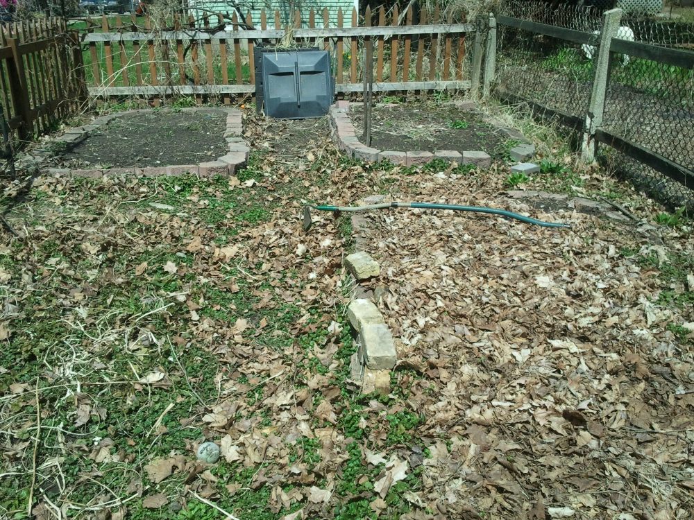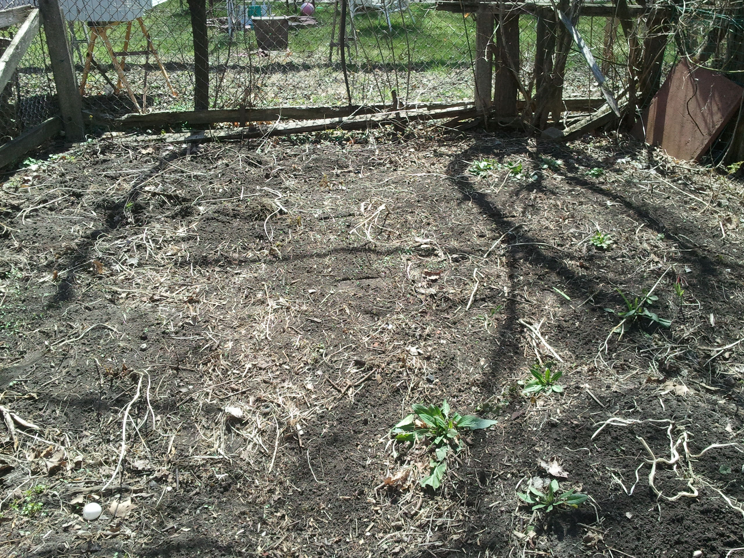 Now to the beds. This weekend I am going to finish clearing the Back 40 and put down clear plastic for the rest of April and May in an attempt to solarize the area (use sunlight to heat the ground enough to rid it of some weeds and grubs). We generally don’t plant annuals until then, and with my niece’s wedding on May 29, I probably won’t get some things out until the first week of June. We are planning on removing two weed trees which should open up the sunlight in the area, though it will still be partial sun – so, my thinking is to plant summer greens crops, broccoli and kale in that area. But first I have to contend with ground ivy (aka ground mint or creeping Charlie – erk). I will want to raise beds back there as well. So there is some heavy lifting to do.